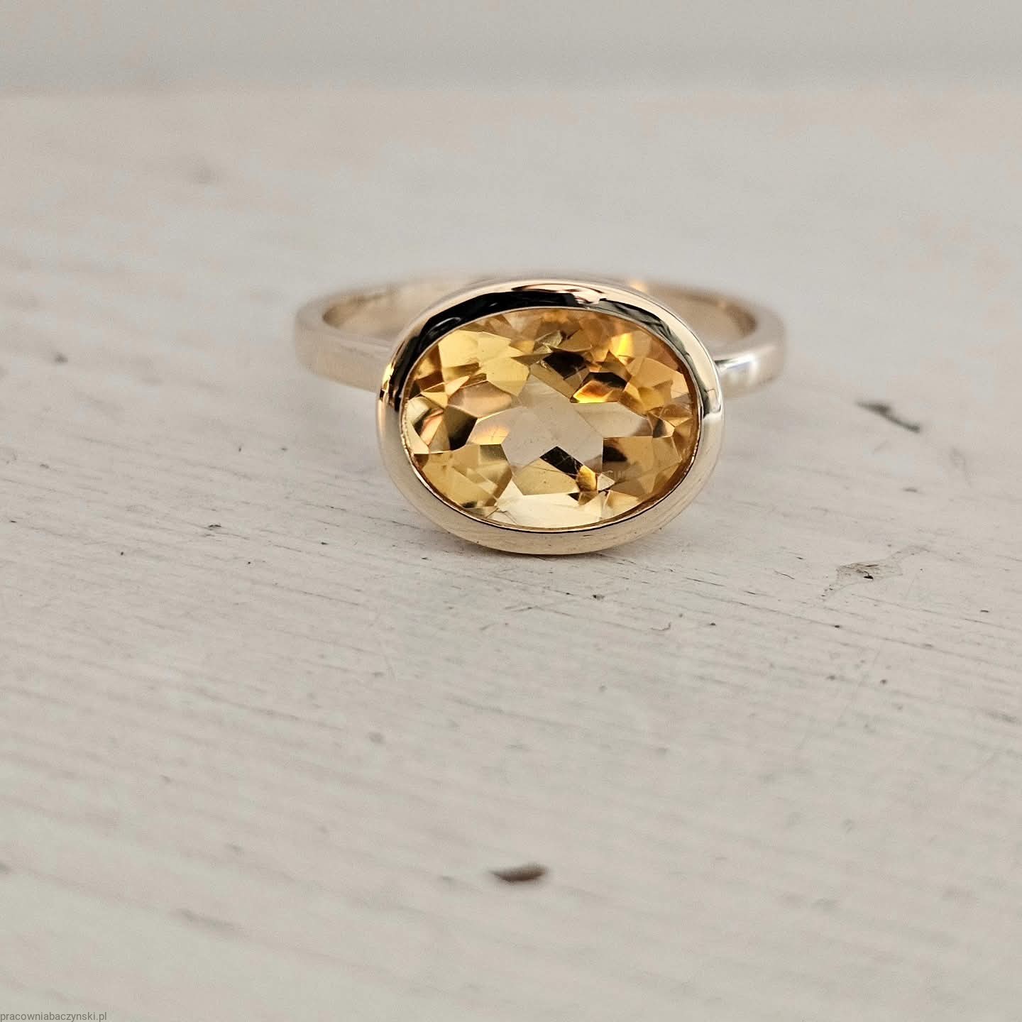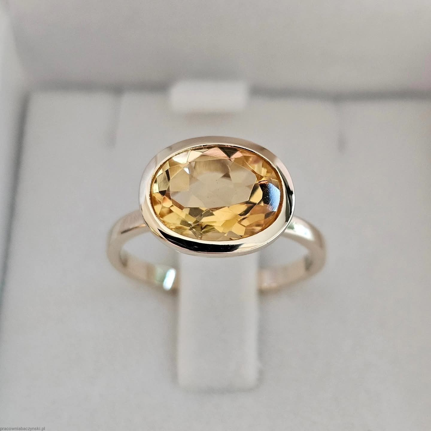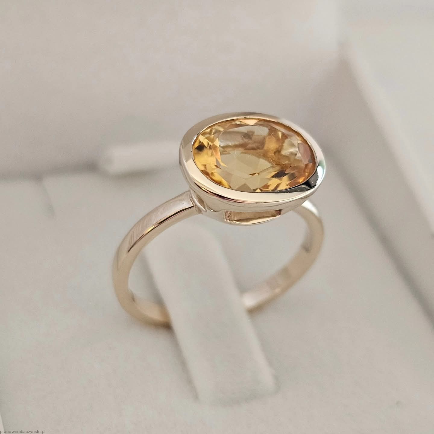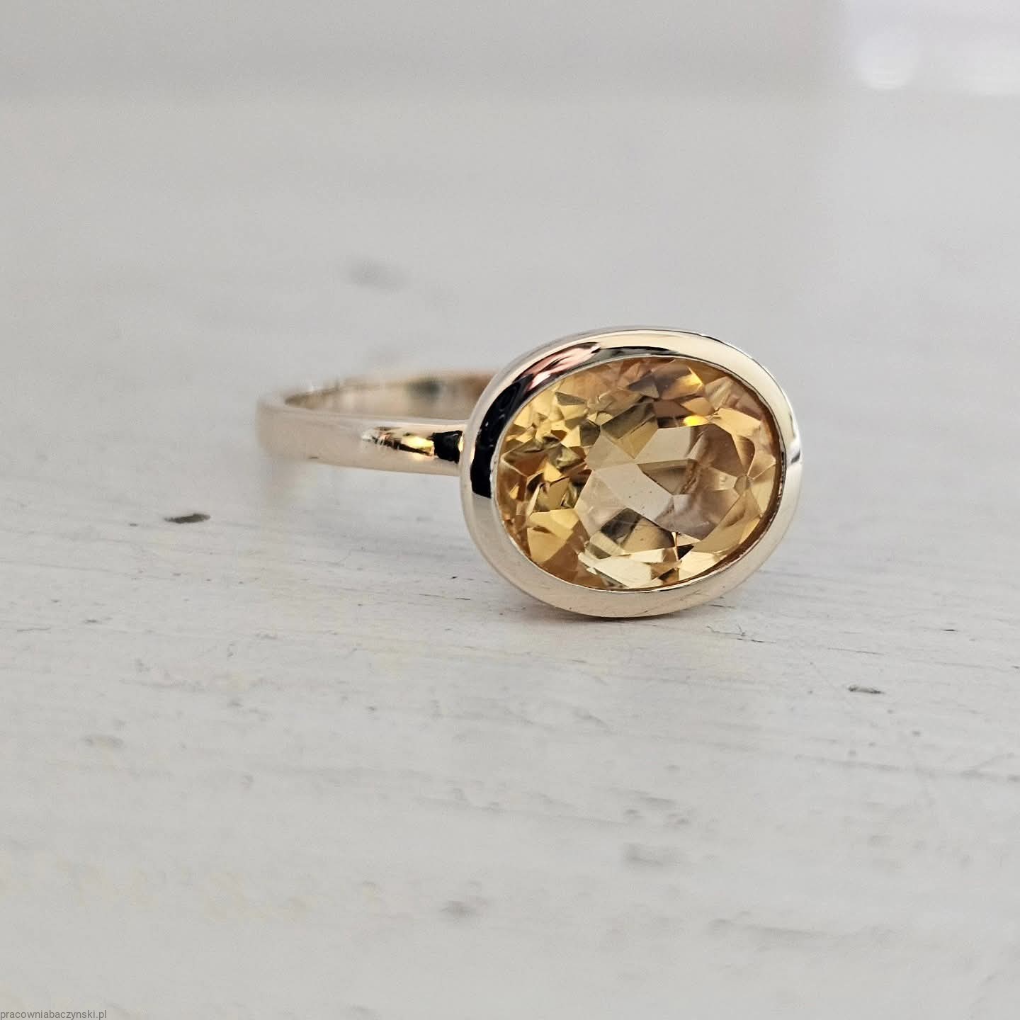 Centralnym punktem tego wyjątkowego pierścionka jest naturalny Cytryn o szlifie owalnym brylantowym i wadze około 2.8 karata o wymiarach 10/8mm.