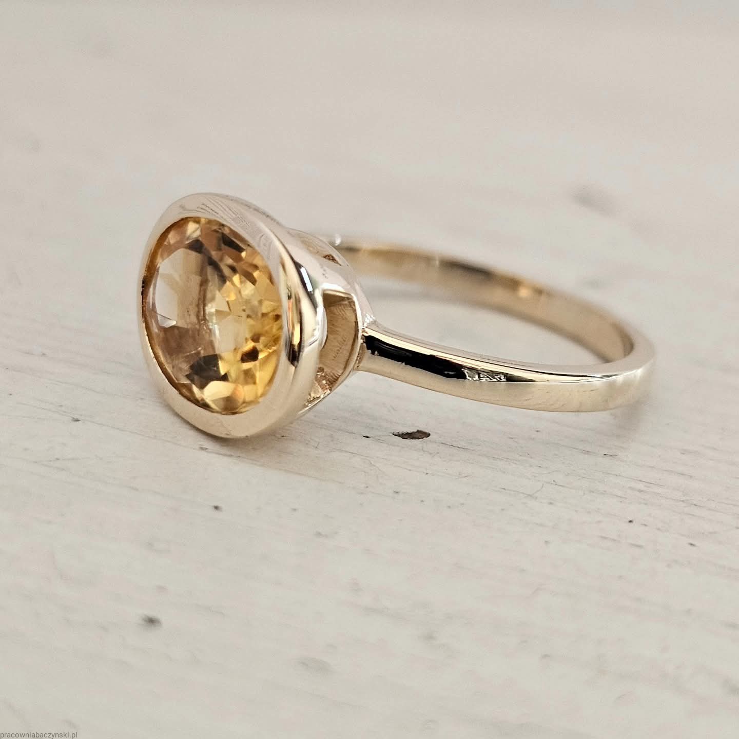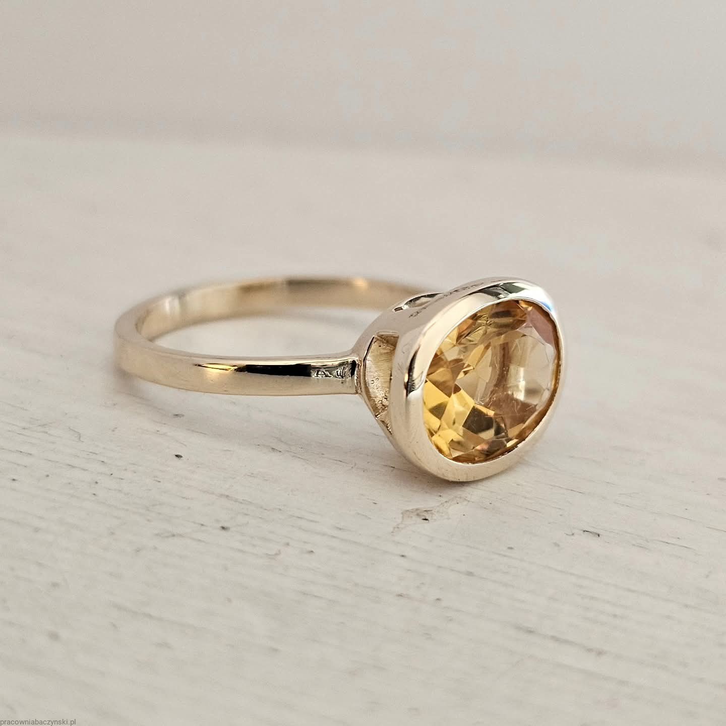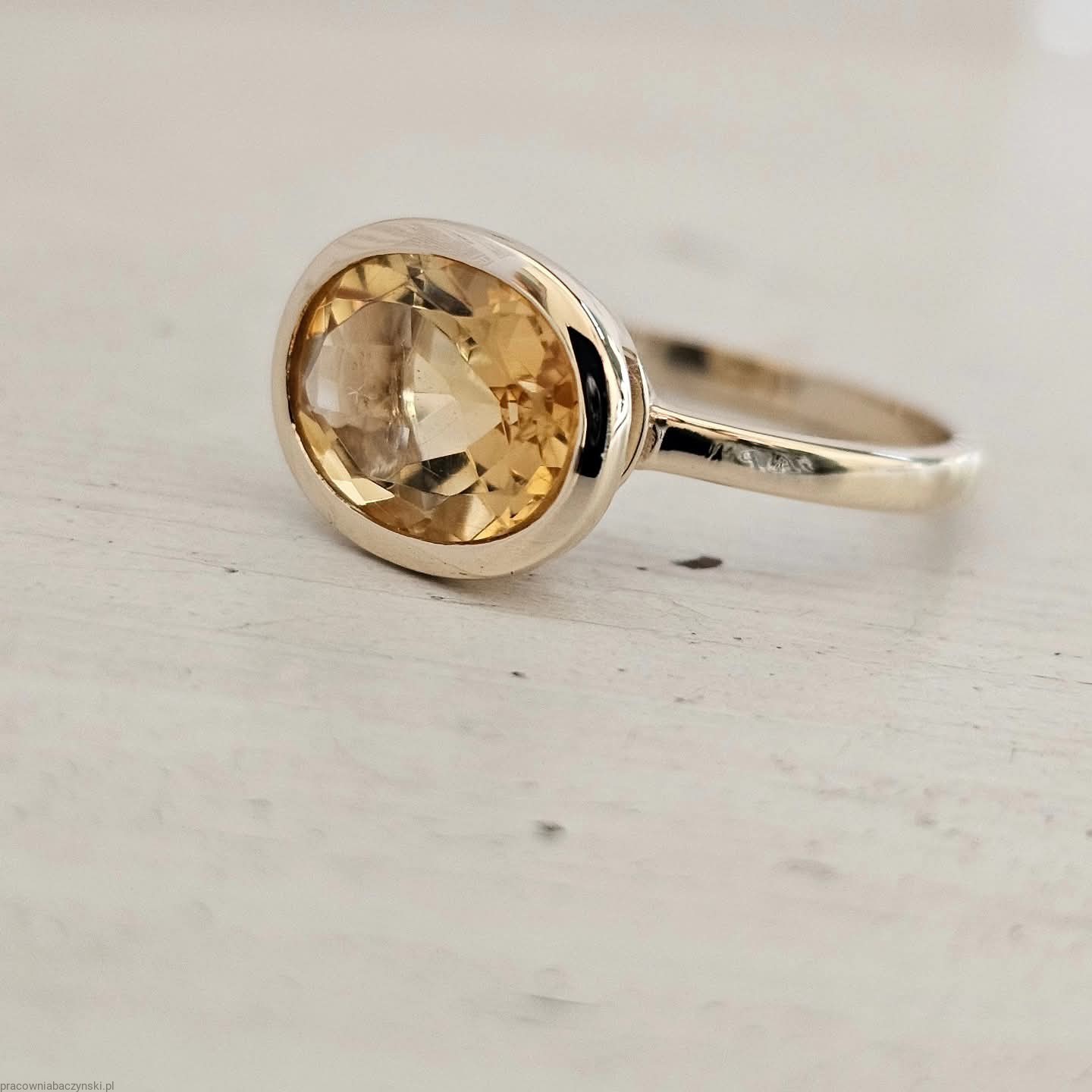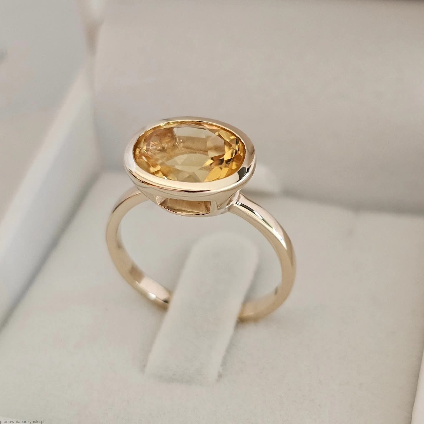 Centralnym punktem tego wyjątkowego pierścionka jest naturalny Cytryn o szlifie owalnym brylantowym i wadze około 2.8 karata o wymiarach 10/8mm.