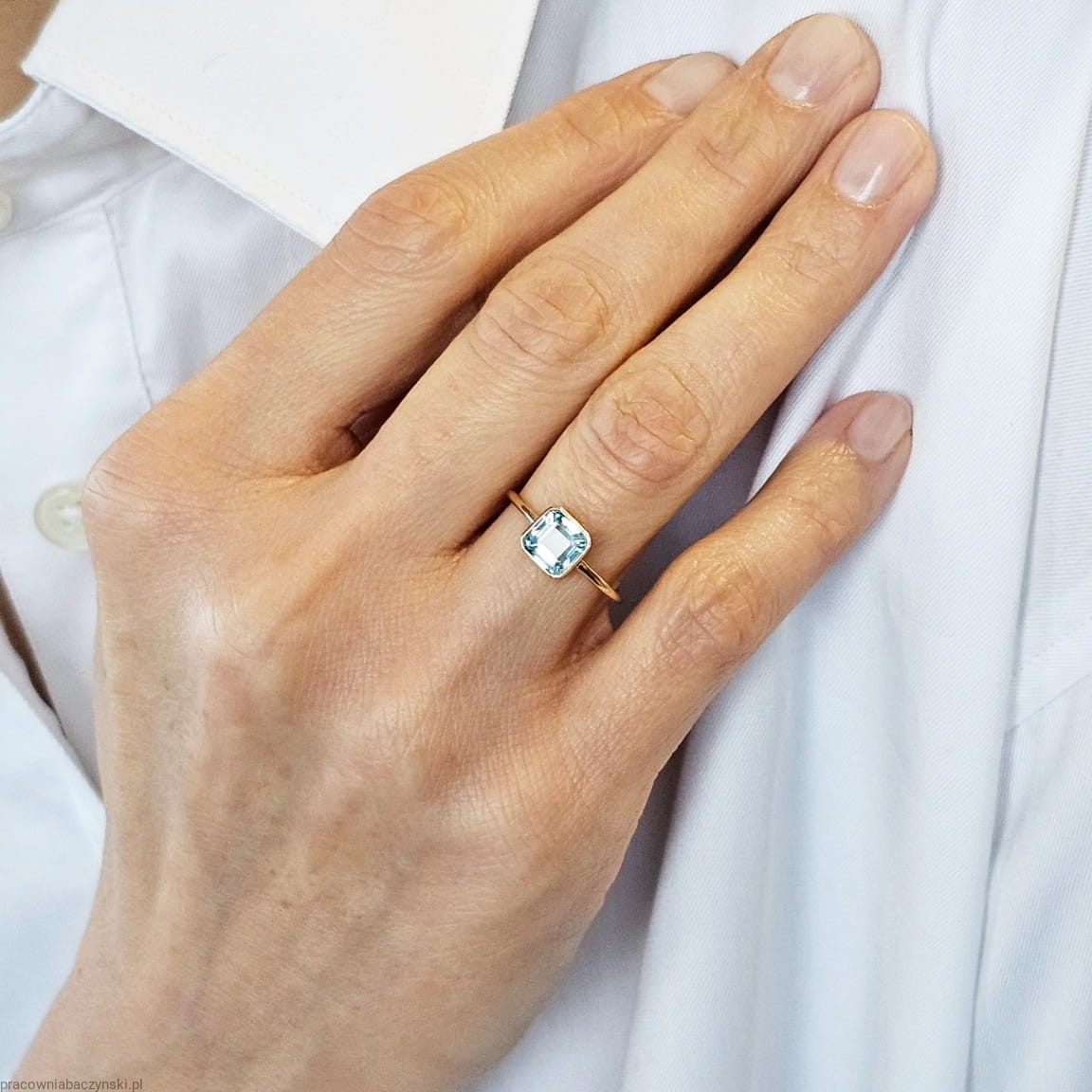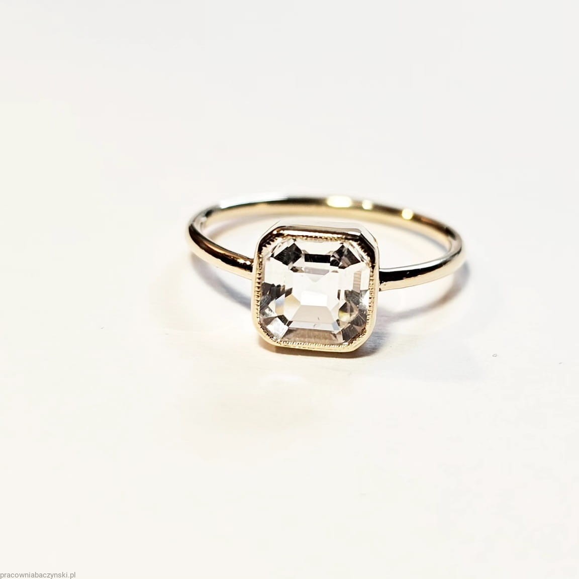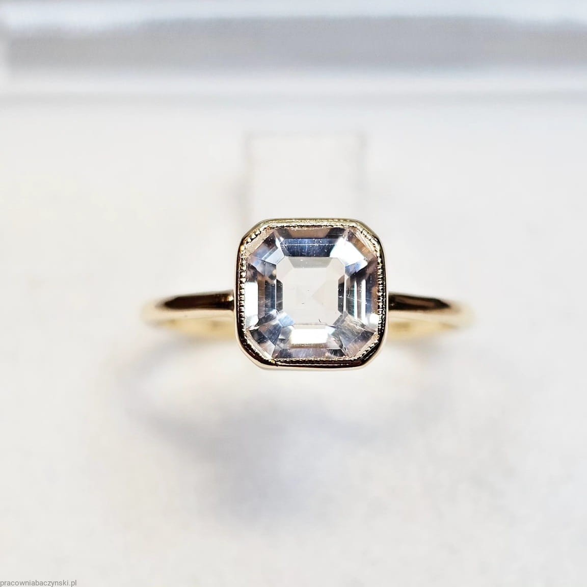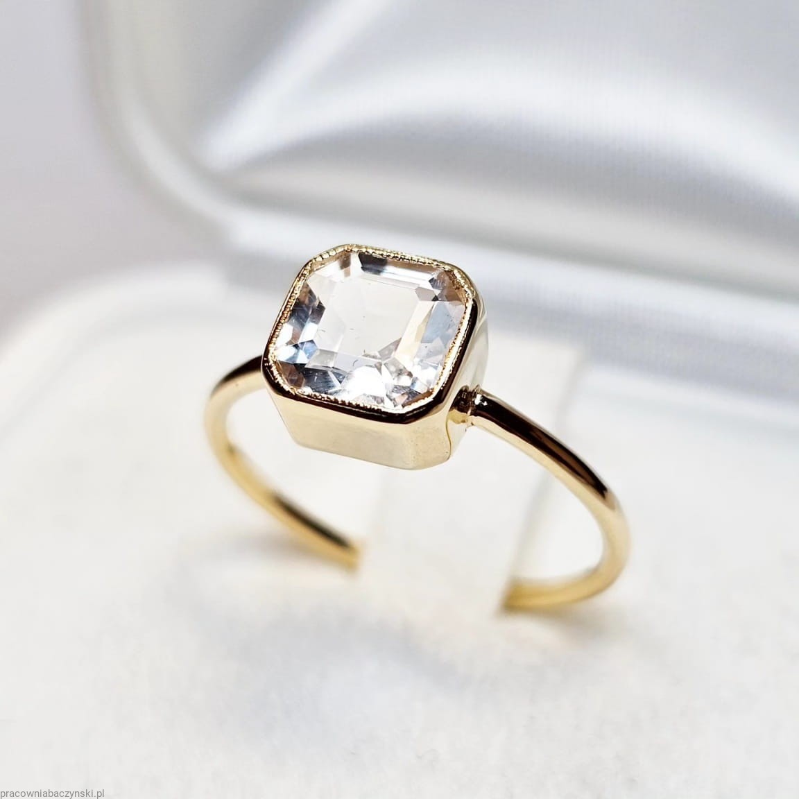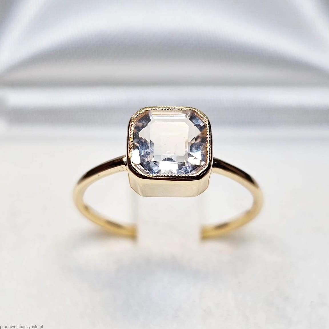 Piazza pierścionek z naturalnym białym topazem