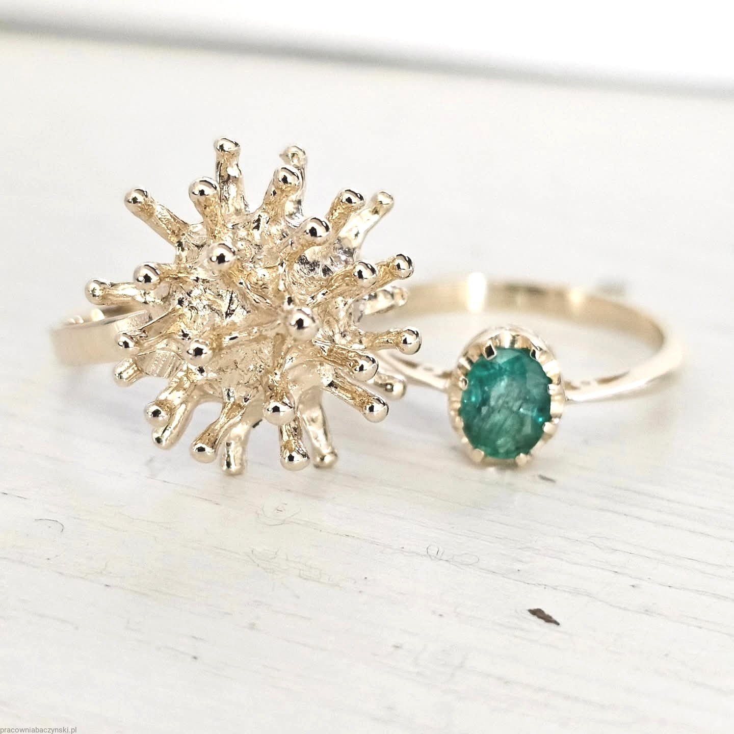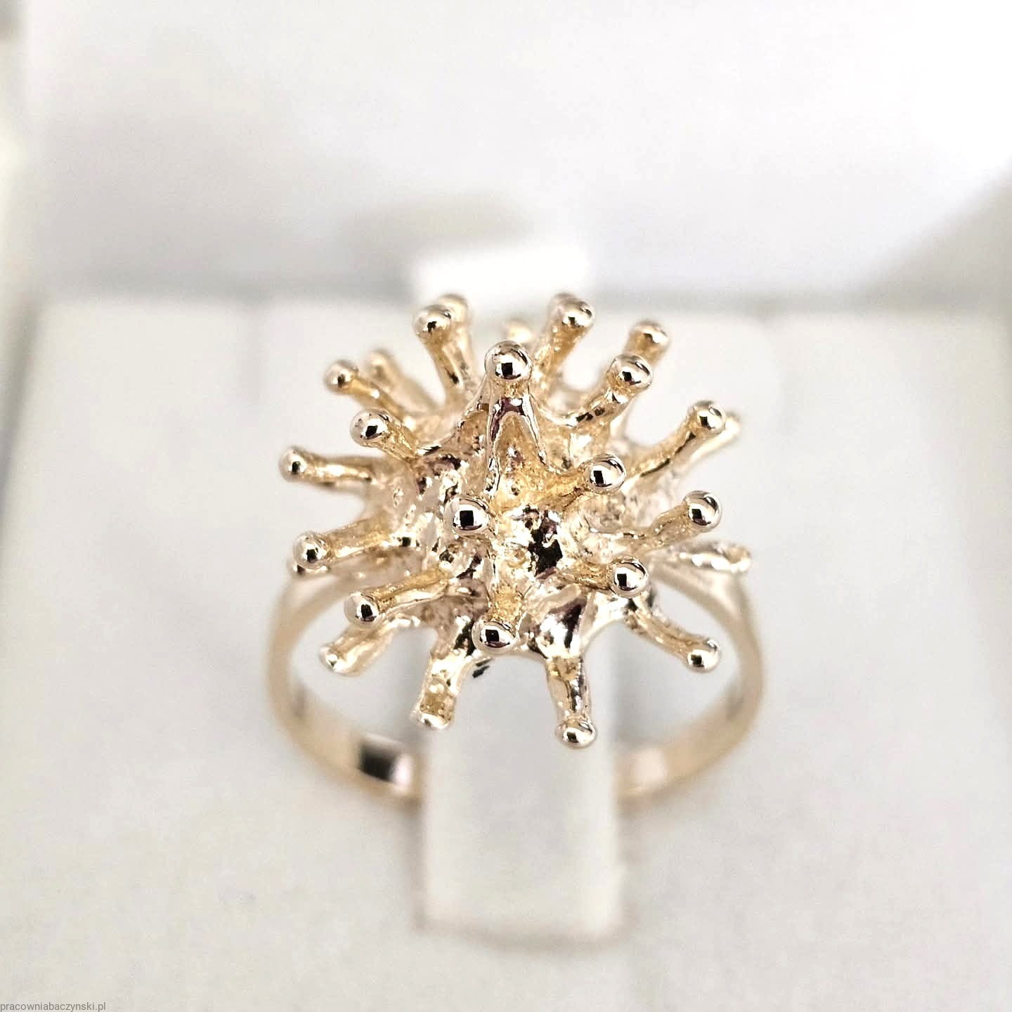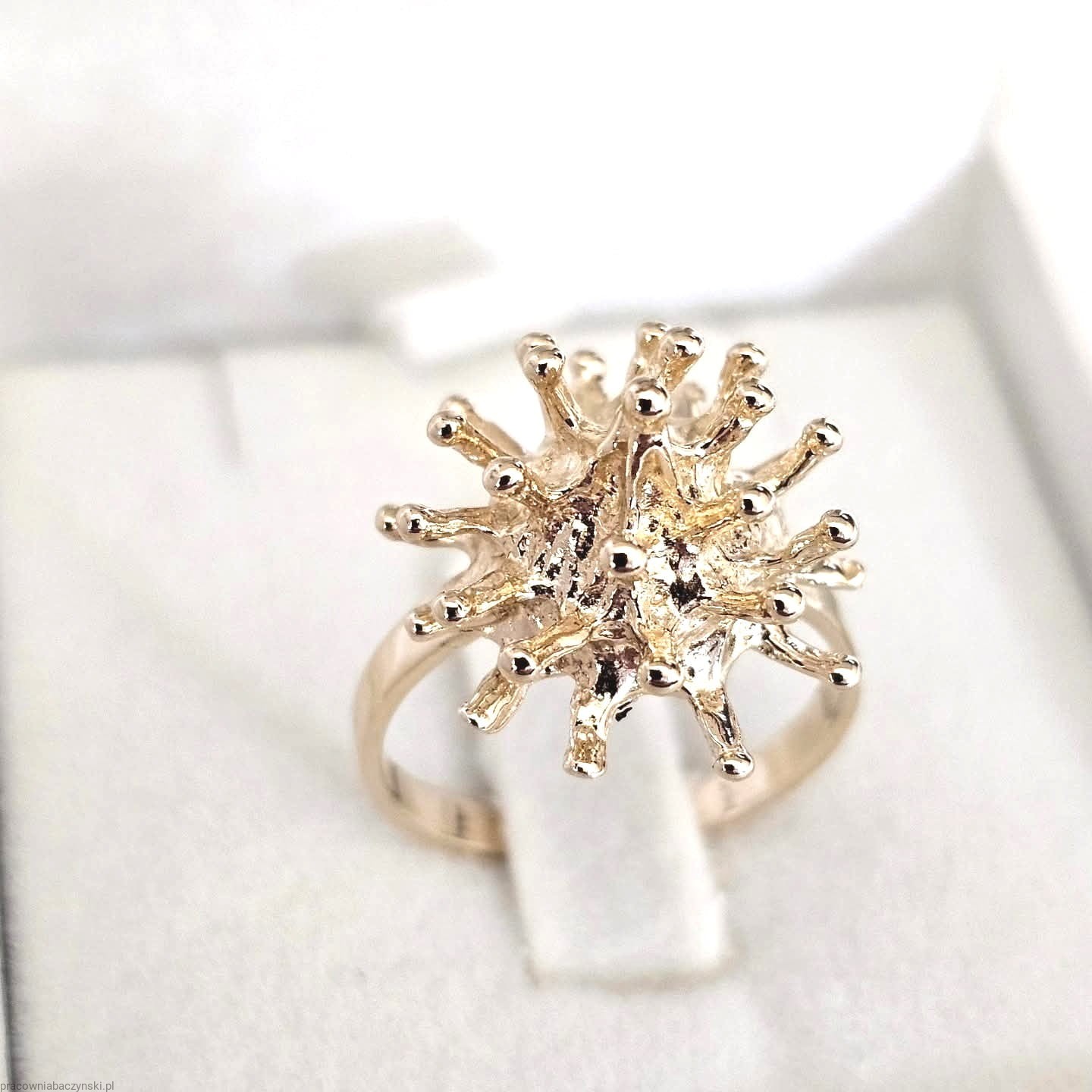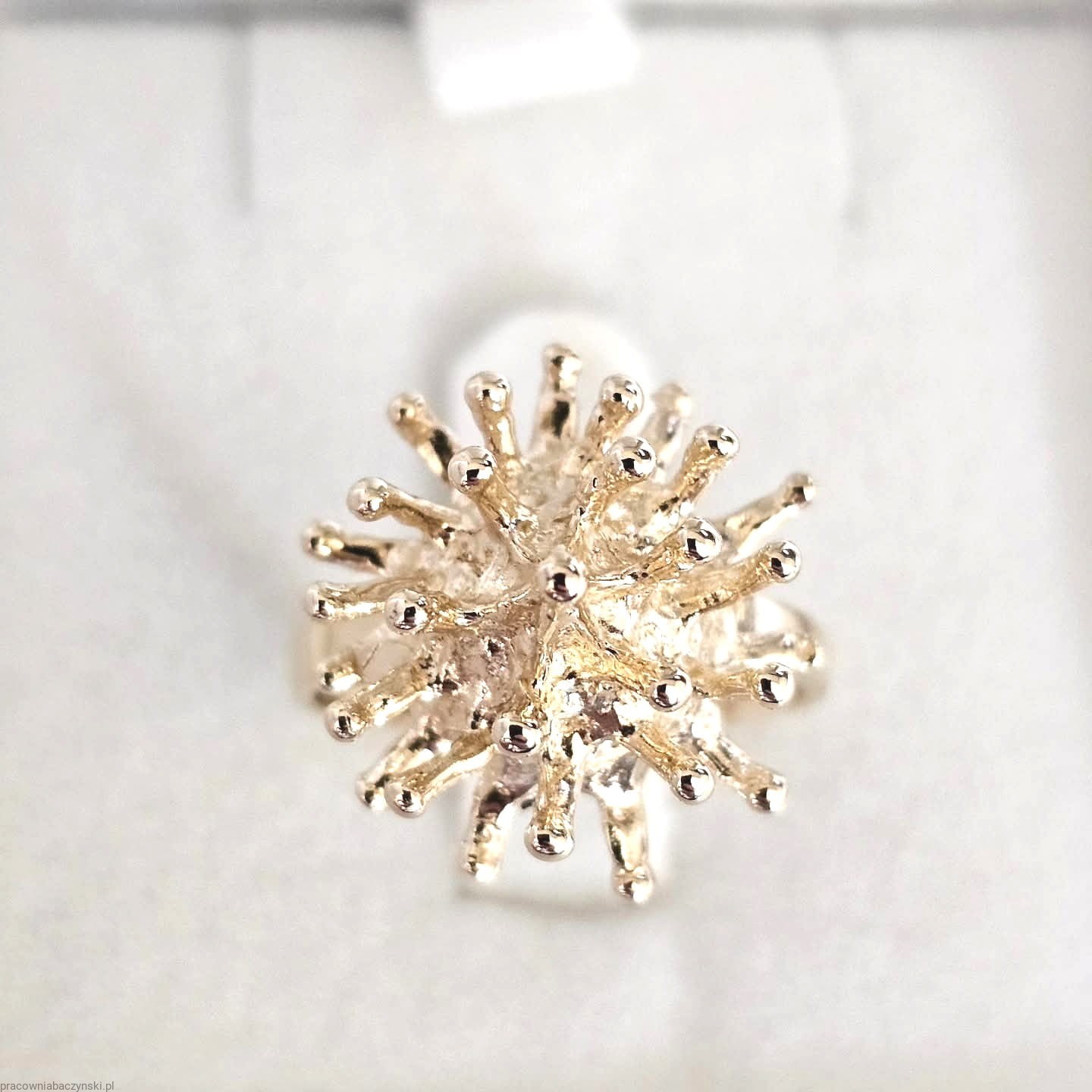 Obrączka pierścionka wykonana jest z 14-karatowego złota o próbie 0.585, co stanowi gwarancję trwałości i jakości. Masa całego pierścionka wynosi około 3.15 gramów, co czyni go nie tylko wyjątkowo pięknym, ale także komfortowym w noszeniu na co dzień.