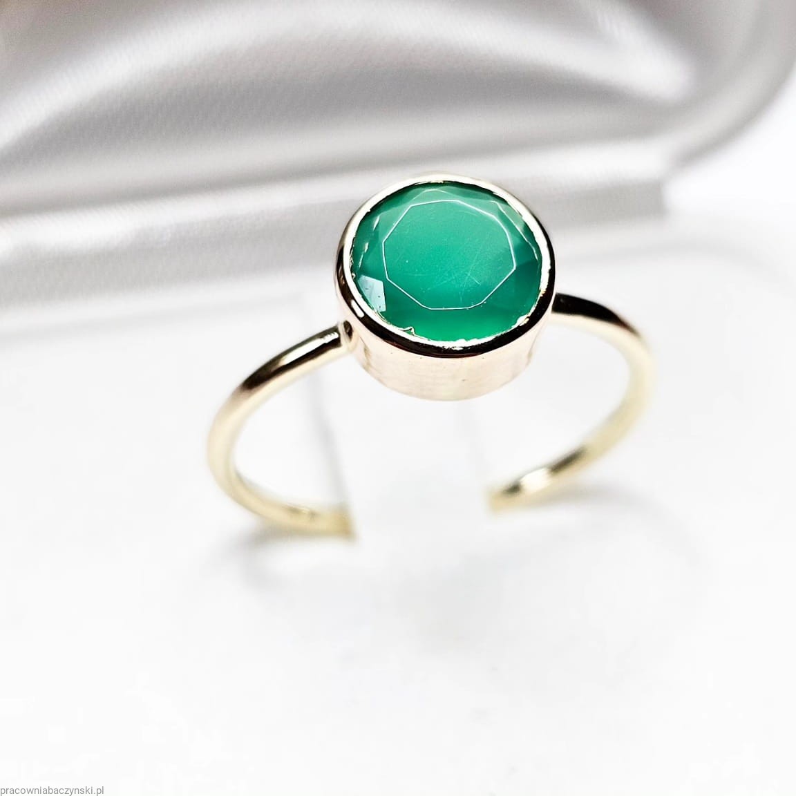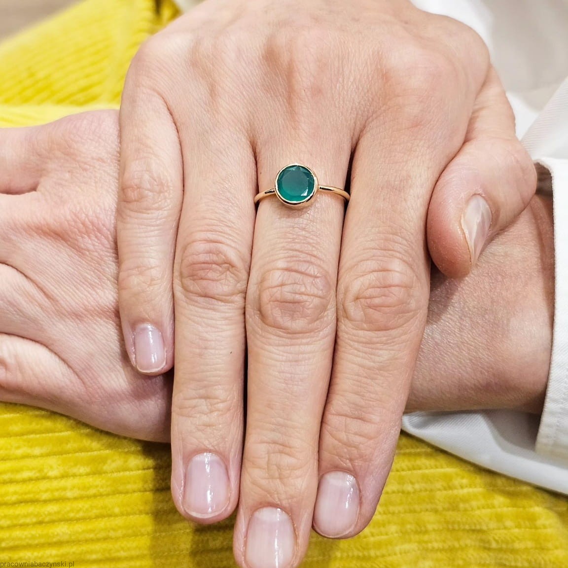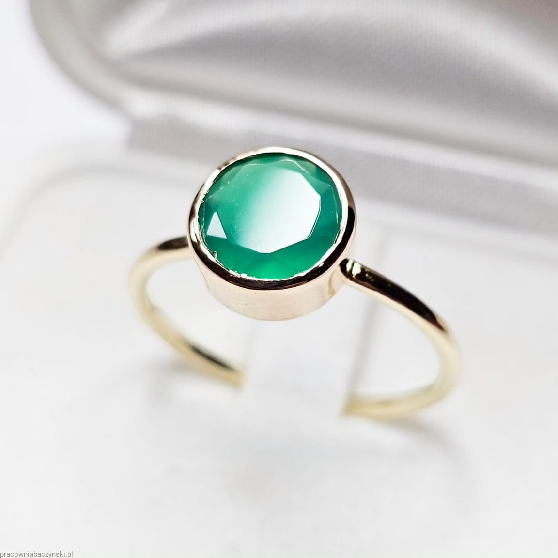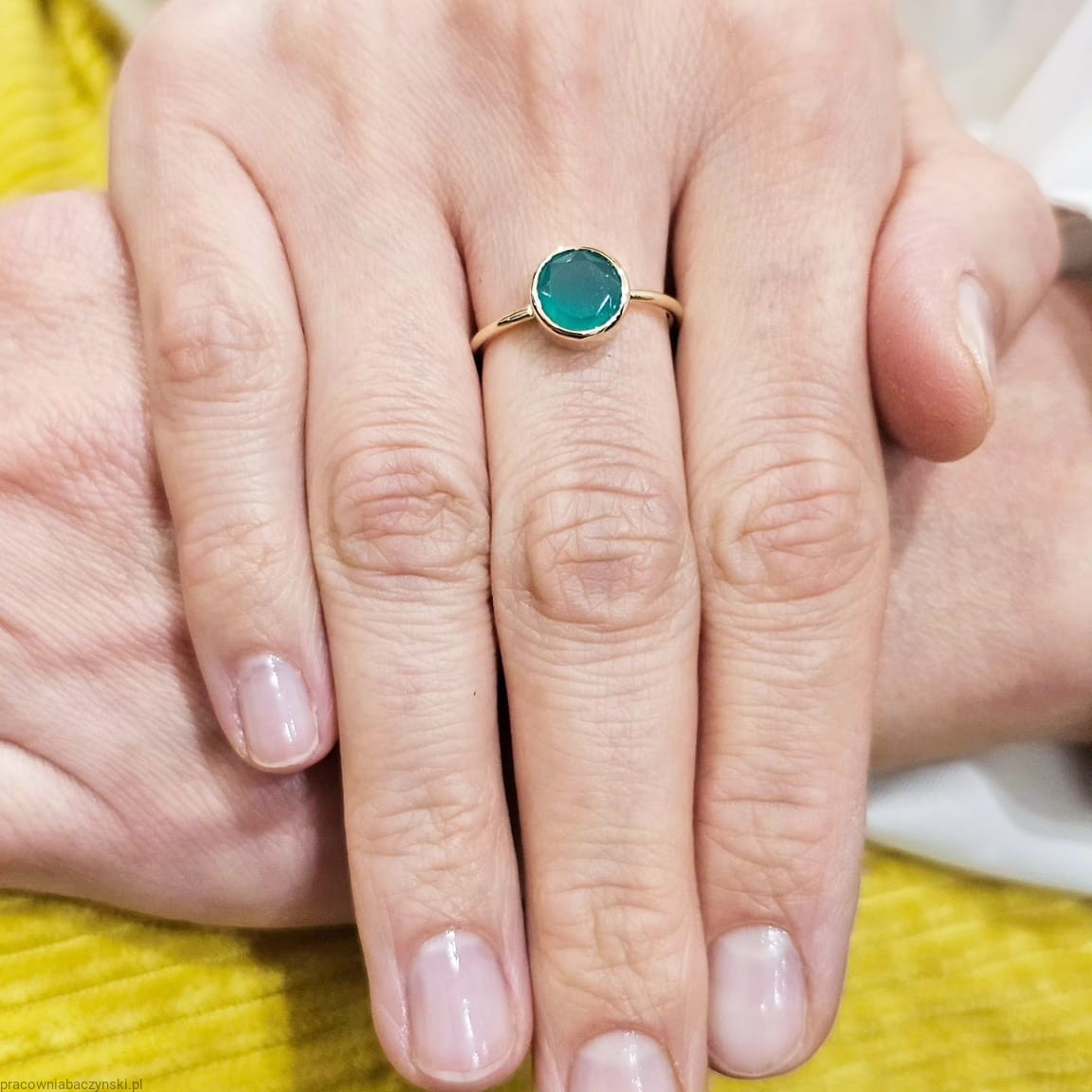 Jasnozielony Agat o szlifie okrągłym brylantowym i masie około 2.20ct emanuje elegancją i jasnością, przypominając odcień szmaragdowego wybrzeża. Jego kamień o imponującej średnicy 8 mm podkreśla wyjątkową prezencję.